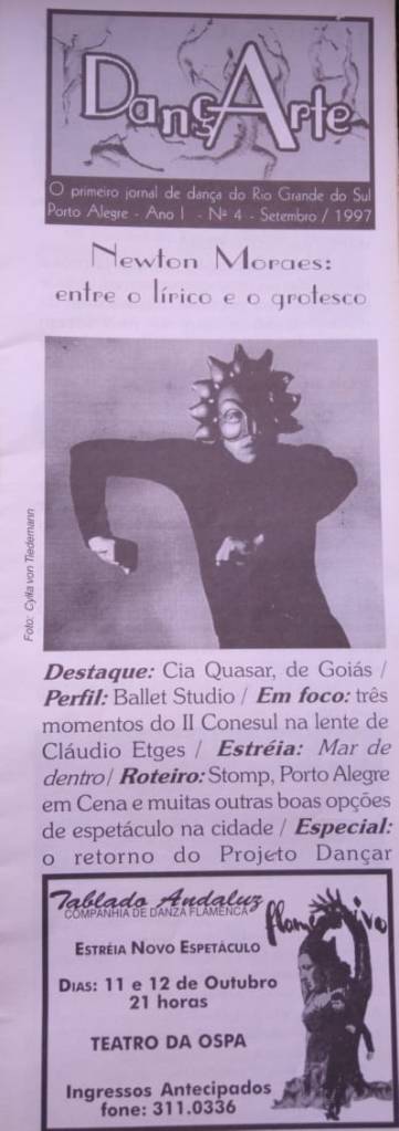 Em 1996 decidi fazer uma loucura. Lançar um jornal exclusivo de dança e independente aqui no Rio Grande do Sul. Sim, há quase 25 anos, era uma época que o celular recém se espalhava e a internet era uma coisa de poucos e bastante limitada no seu alcance e recursos. Assim nascia o DANÇARTE num formato de revista de bordo da época, compridinho e fininho, com 12 páginas, mas cheio de espaço para artigos, críticas, resenhas, opiniões, a programação e história da dança no geral, das escolas e profissionais de dança locais.