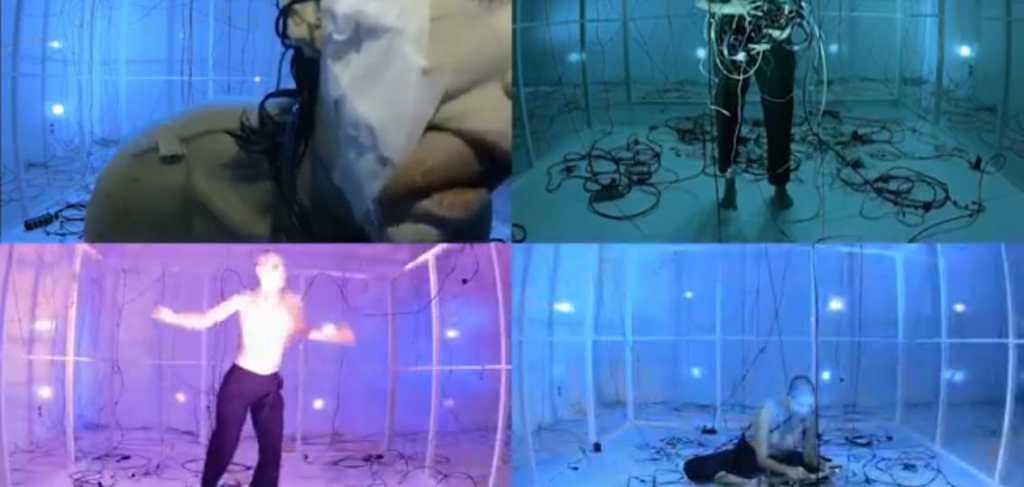 O uso da tecnologia na performance portanto não é apenas uma necessidade inevitável das contingências de teatro fechados, é o suporte que sustenta, dá coerência a essa dança de telas simultâneas, de grande closes, de corpos que dançam para a câmera, que sabem da lógica dessa modalidade de relação e brinca ao mesmo tempo que o faz com qualidade. Ao invés de lamentar pela impossibilidade da presença no espectador no palco, ao contrário, tira proveito dessa condição. E para fazer isso entende que não é apenas introduzir o aparato tecnológico, mas que essa nova condição exige estudo dessa outra espacialidade, dessa outra temporalidade, dessa outra forma de afetação, de vínculo.