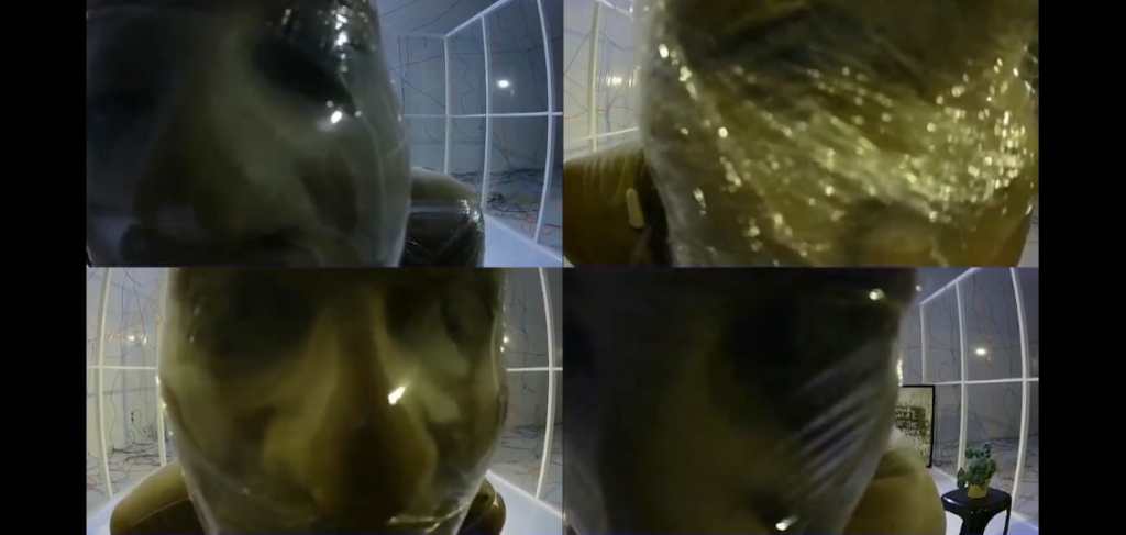 E é assim que a cenografia de Rodrigo Shalako constrói esses cubículos plastificados que ao mesmo tempo que remetem a um futurismo apocalítico, ganham um contorno de uma vida enjambrada, como que jogado numa gambiarra de fios e cabos que se emaranham e emaranham esses corpos que por ali habitam. Uma redoma translúcida que mais expões do que protege, assim como os figurinos de Janaina Ferra. Enfim, corpos fragilmente embalados, uma arena em que se embatem essas criaturas em busca de algum alento. Os vídeos criados por Paula Pinheiro e a edição estabelecem um ritmo e tempo na medida certa para sustentar esse universo.