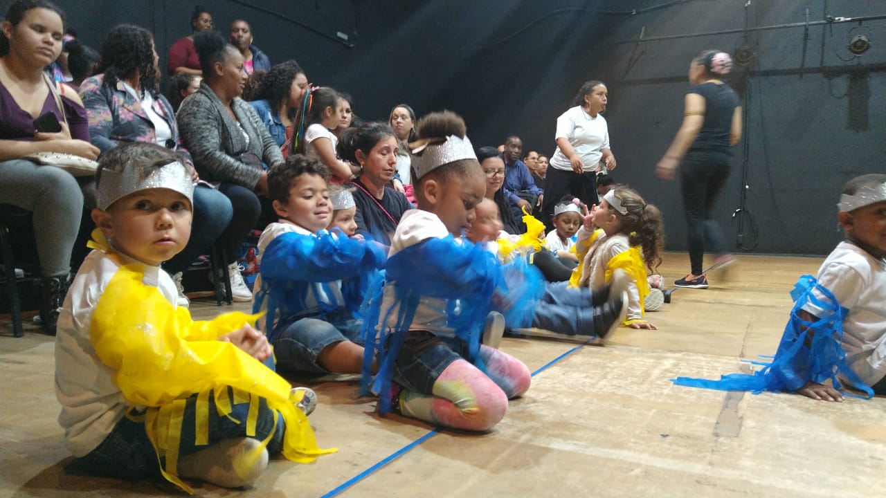 E foi isso que vi em cena no trabalho da EMEI: crianças que se permitiam descobrir e se aventurar com dança naquele espaço, aliás, por não ser um palco italiano, permitia a correria e a interação sem maiores riscos e aproximava a plateia. Os gestos eram simples e adequados às diferentes faixas etárias. Educadores e alunos partilhavam de cada cena ao som de Leozinho, de Caetano Veloso ou outro hit que revelava talentos já ali anunciados. Era uma rede de colaboração tão preciosa e um resultado tão divertido e afetuoso que naquela tarde não havia como não se emocionar e se envolver. Uma mãe deficiente visual escutavam a descrição do que acontecia em cena e com a música e o burburinho aplaudia e abraçava seu filho depois da apresentação. Outro aluno se desgarrou do grupo e fez sua própria trajetória coreográfica. Outra decidiu terminar a coreografia antes do tempo e ainda outro decidiu entrar na coreografia que não era a sua. E muitos e muitas que executavam movimentos em harmonia no compasso das músicas. Todos e todas juntos num grande espetáculo que não desprezou nenhum participante, do modo que fosse.E talvez isso seja uma das coisas mais importantes no mundo em que vivemos com seus desafios de convivência e imaginação.
